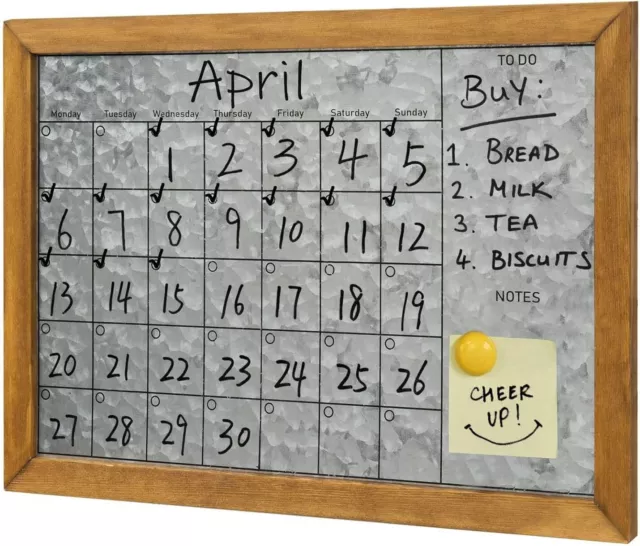 Galvanized Dry Erase Calendar. Mygift wall mounted rustic galvanized silver metal dry erase memo board calendar with brown wooden frame. Usable with dry erase markers,.